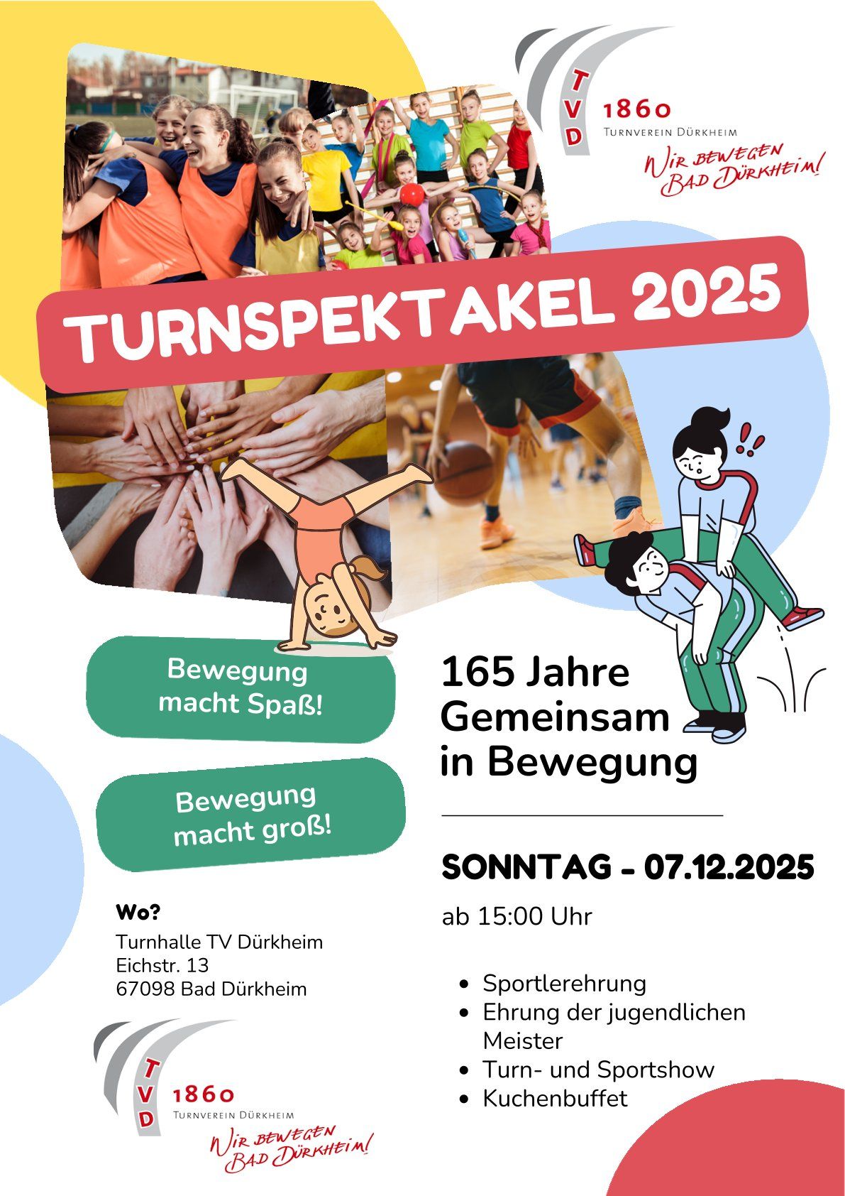 Anfang Dezember, immer am 2. Advent, findet das alljährliche Turnspektakel statt, bei welchem der Verein zusammen kommt und die Eltern sehen können, was ihre Kinder das Jahr über gelernt haben.