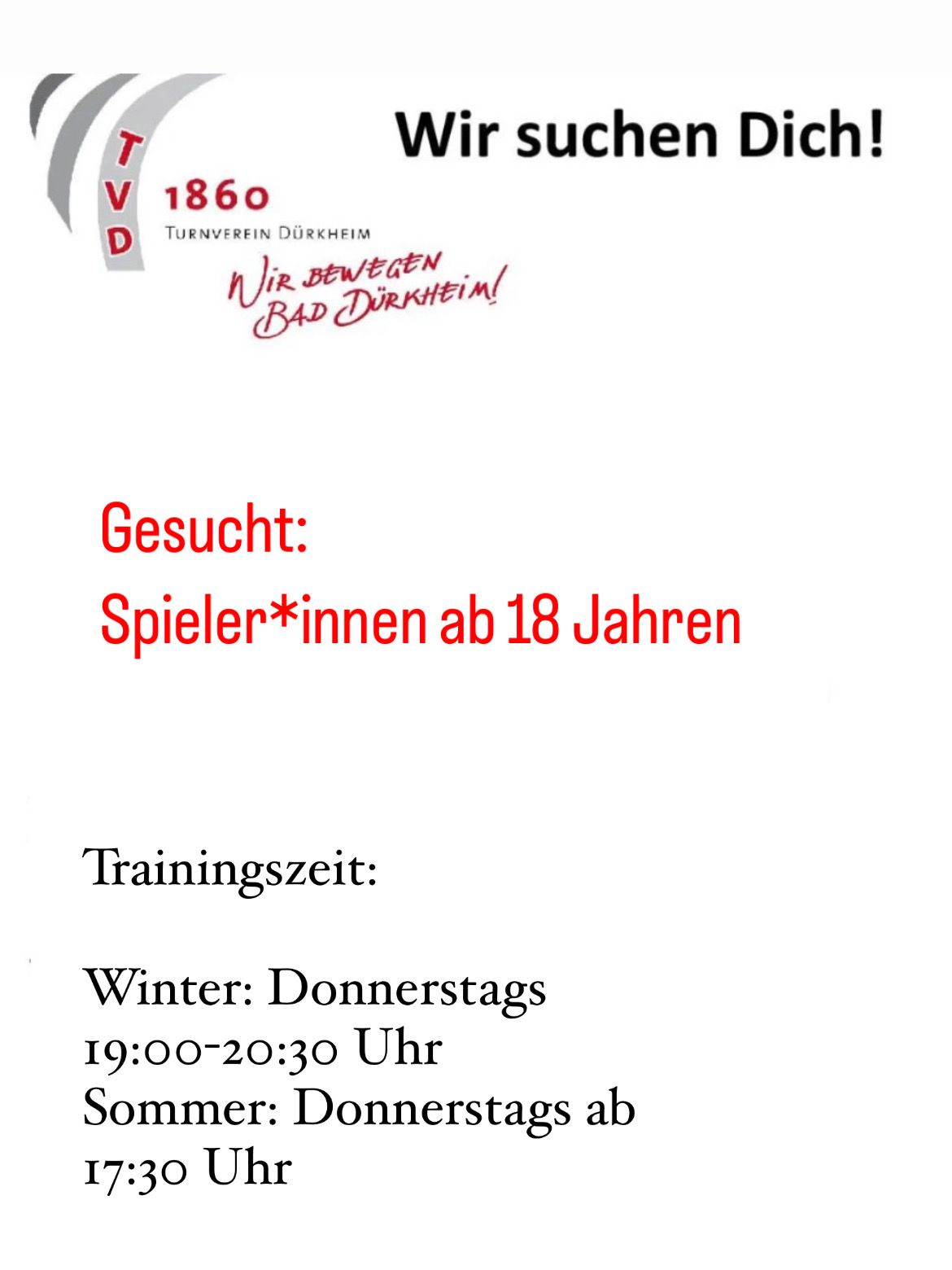 Bewirb dich jetzt per Email bei info@tv-duerkheim.de !